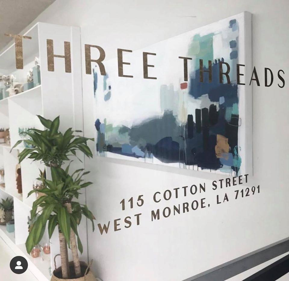 Three Threads is an Art, Apparel, and Decor boutique thoughtfully curated by Louisiana artist, Sallie Bynum Anzelmo.