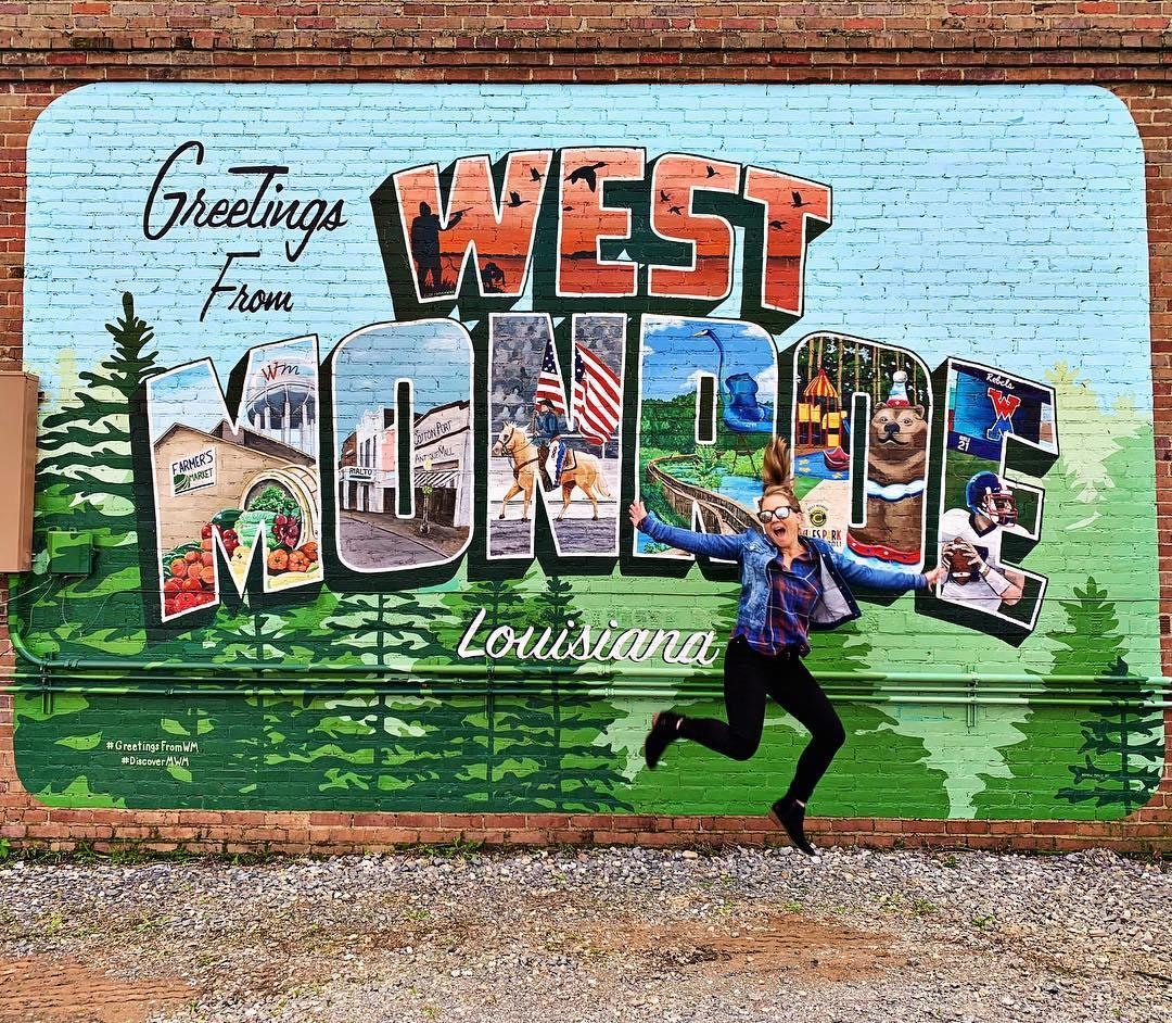 Brightly colored murals decorate the streets of Downtown Monroe and West Monroe. Snap a picture with one of the city postcard murals or with the work of a local artist.