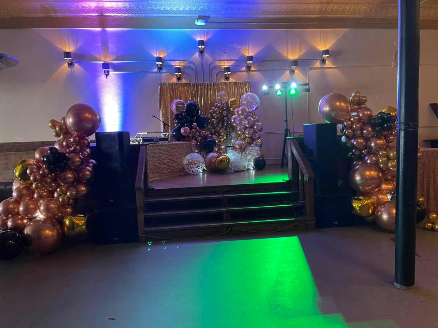 Over 5,000 square feet of event space for up to 250 guests, a bandstand, and huge bar area.